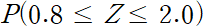 0.8 =, 2.0 =을 입력해서 구하려는 누적분포의 경계를 입력하고