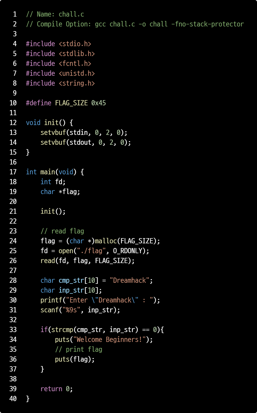 대충Dreamhack 이라는 문자열을 입력받으면 flag를 뱉는 것 같습니다.