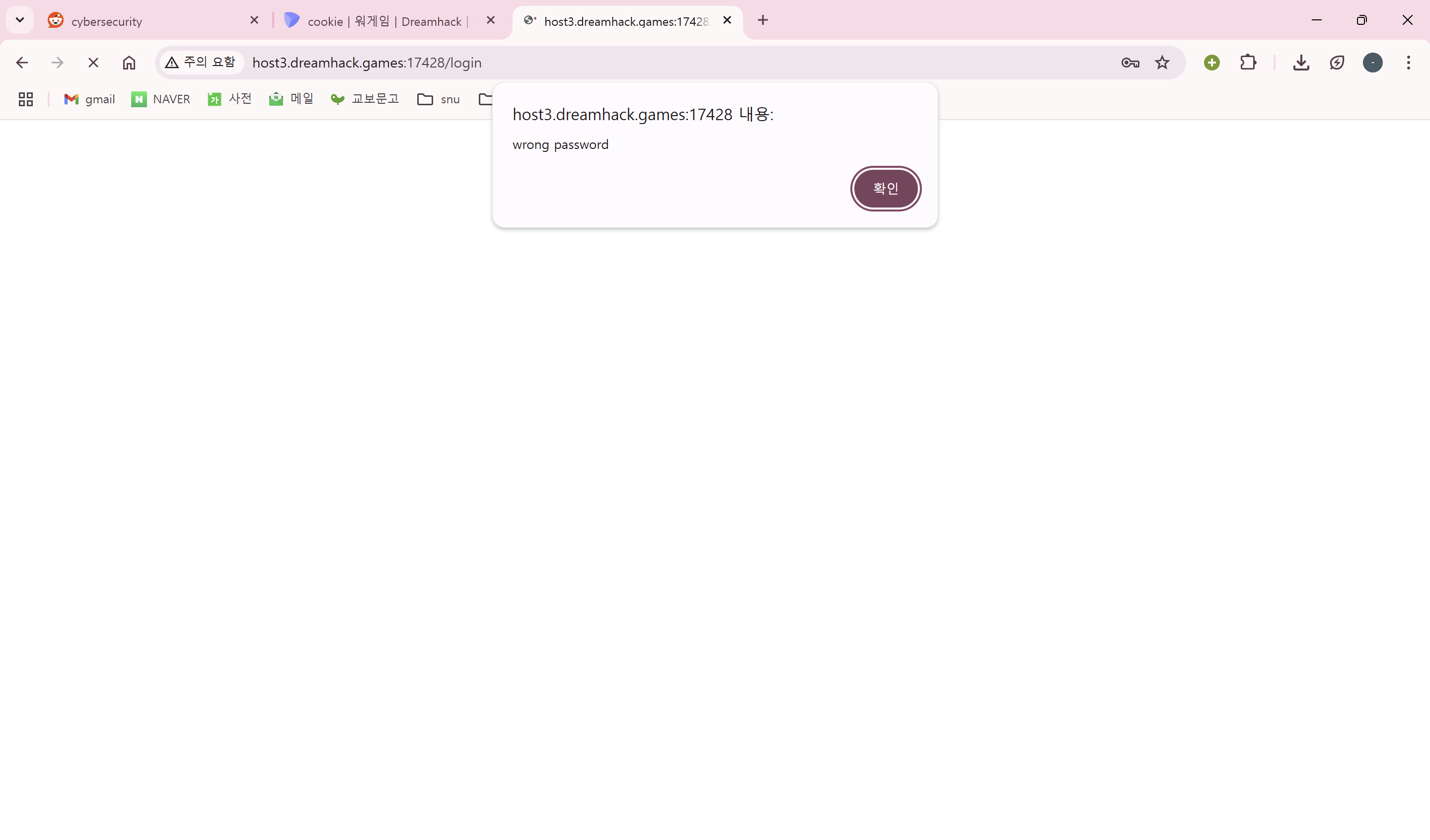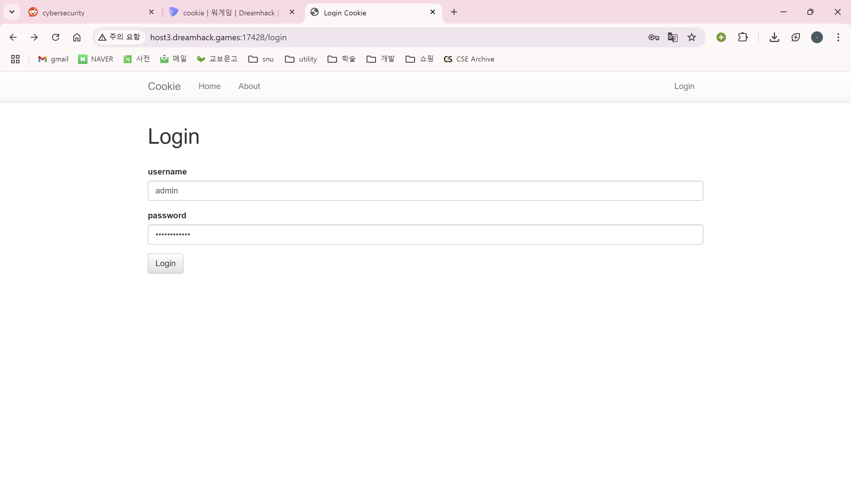 curl -H "Cookie: username=admin" http://host3.dreamhack.games:17428/그럼 웹 페이지가 나타나는데