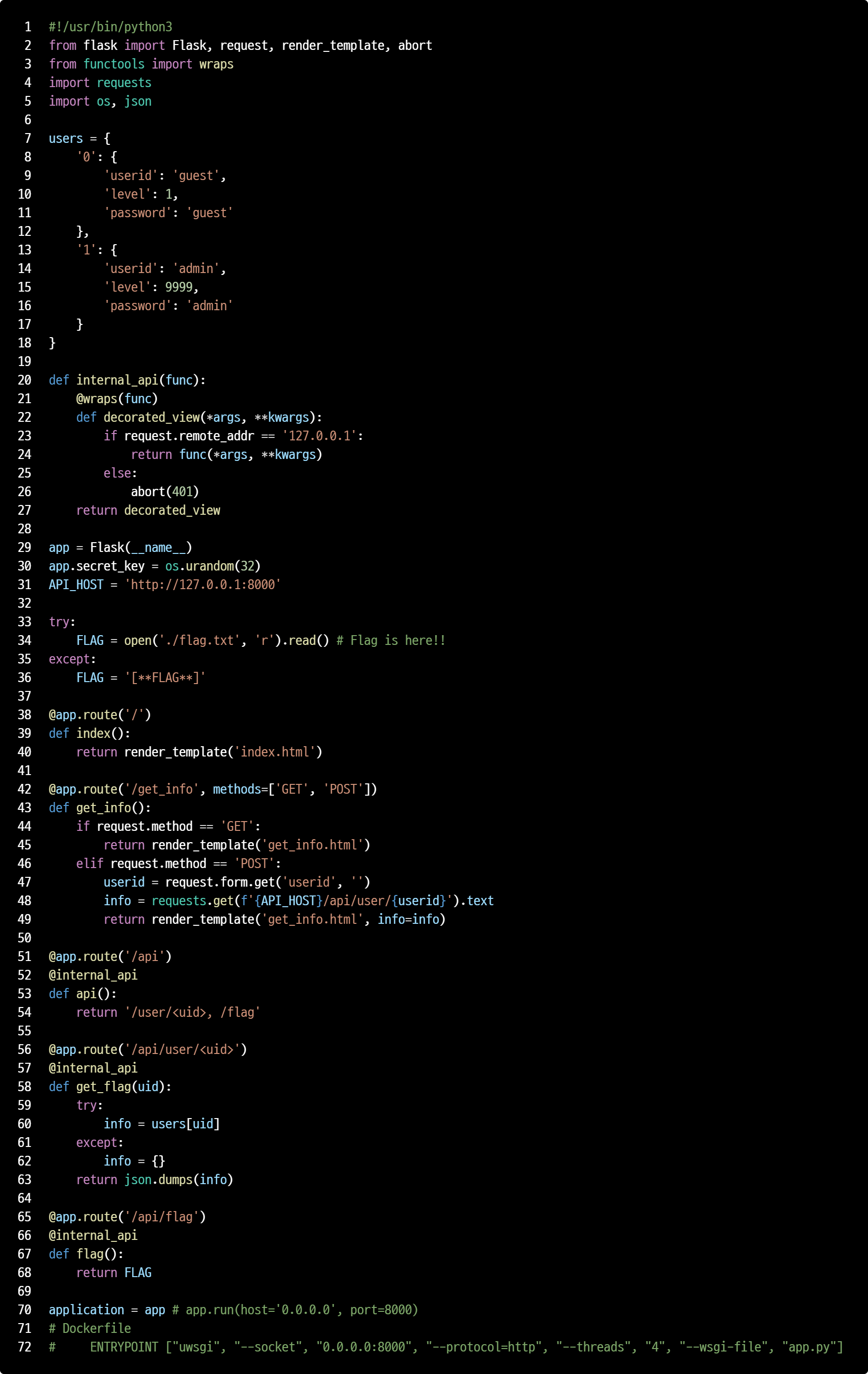 코드를 보니 /api/flag를 가져오면 될 것 같습니다.
