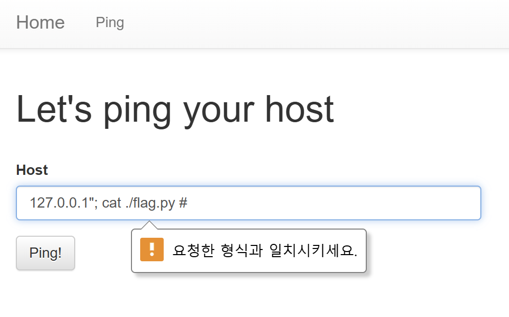 확인해보니까 프론트 단의 templates/ping.html에서 유효성 검사를 하네요