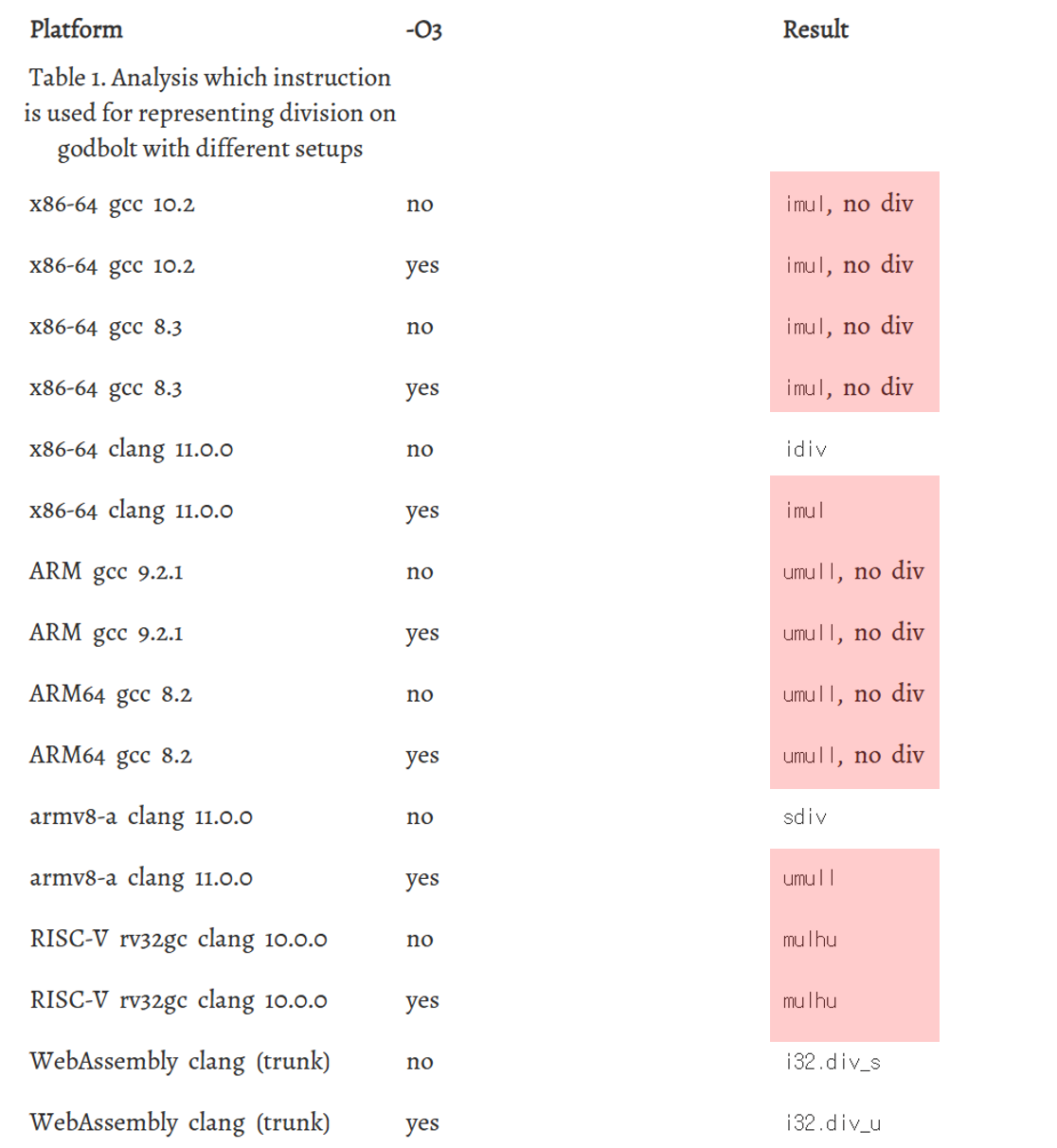 1994년에, PLDL 에서 "Division by Invariant Integers Using Multiplication." 이라는 제목의 페이퍼가 나온다. 엄밀히 말하면 4B 나눗셈 하나를 8B 짜리 곱셈 하나와 rshift 하나로 동치시킬 수 있다는 주제.