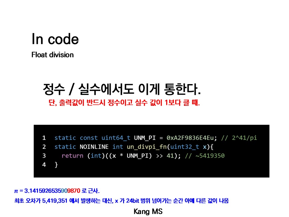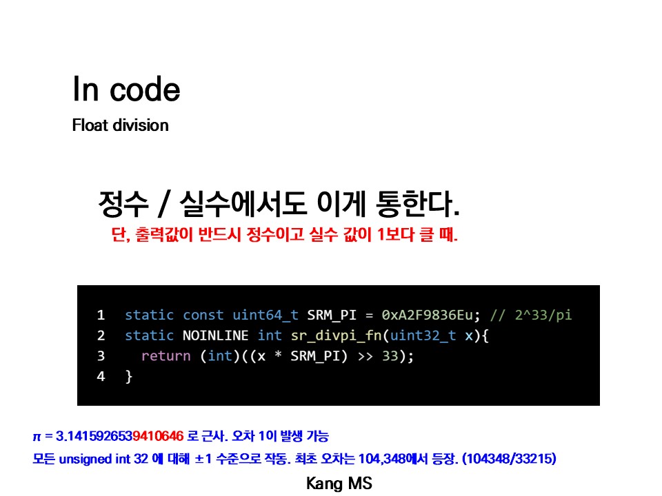 나눗셈을 곱셈으로 대체 가능하다는 아이디어는 상당히 아름다운 편이기에 쓸 수 있는 엥간한 곳에서는 다 쓴다. 심지어 나누는 값이 variant 해도 쓴다.