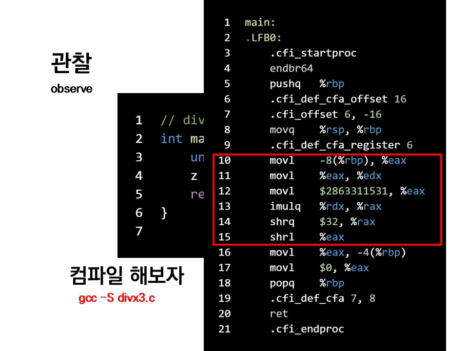 나눗셈은 다른 연산에 비해 압도적으로 느리므로, 대치를 통해 높은 속도 향상을 얻을 수 있을 것이다.